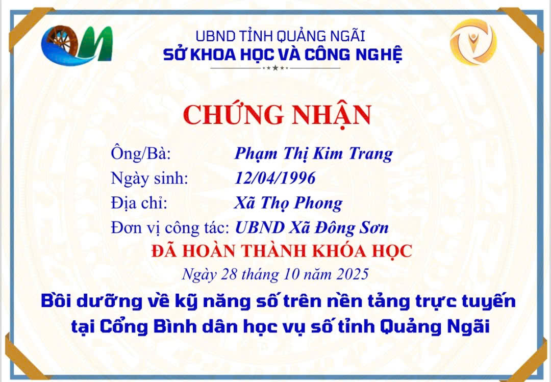 Hưởng ứng phong trào “Bình dân học vụ số” do Ủy ban nhân dân tỉnh Quảng Ngãi phát động, nhằm nâng cao nhận thức và kỹ năng sử dụng công nghệ số trong cộng đồng, trường THCS Bình Thanh – xã Đông Sơn đã tích cực triển khai nhiều hoạt động thiết thực và ý nghĩa.